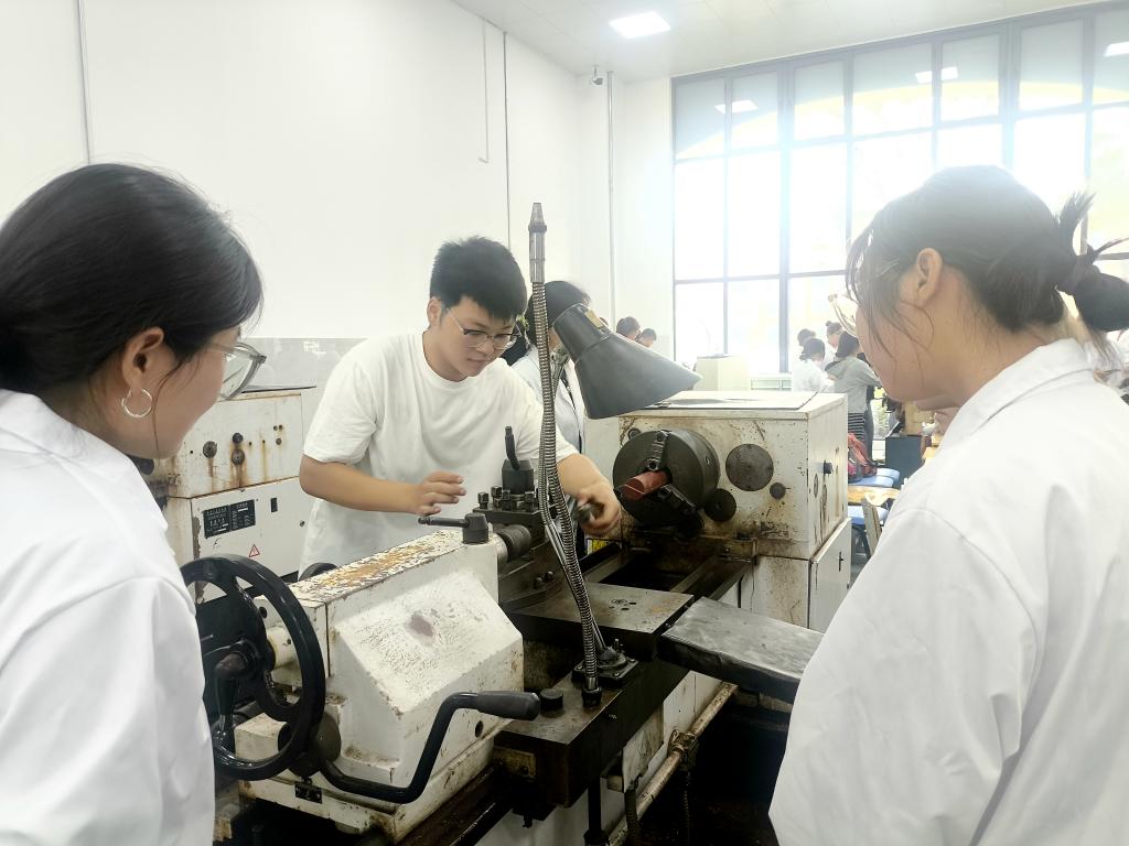 本次实习由信阳技师学院比亚迪学院的专业老师系统讲解理论知识、实验操作流程以及C6140D机床的构造与功能,并布置本次实习需完成的实习任务。实习中,信阳技师学院的优秀学员发挥示范引领作用,带领同学们开展具体的实践操作。在实践环节,生物制药专业同学们依据老师讲授的知识亲自动手操作机床、制作零件,最终由专业老师对实习产出结果进行打分评定。