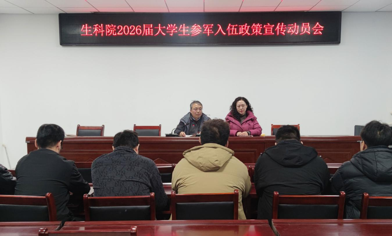 为深入贯彻落实国家征兵工作部署,鼓励广大青年学子投身国防建设,12月22日下午,我院在敏思楼418会议室召开2026届大学生参军入伍政策宣传会。学院党委副书记荣宪举、分团委书记熊蕾出席会议,2026届全体男生参加本次会议。