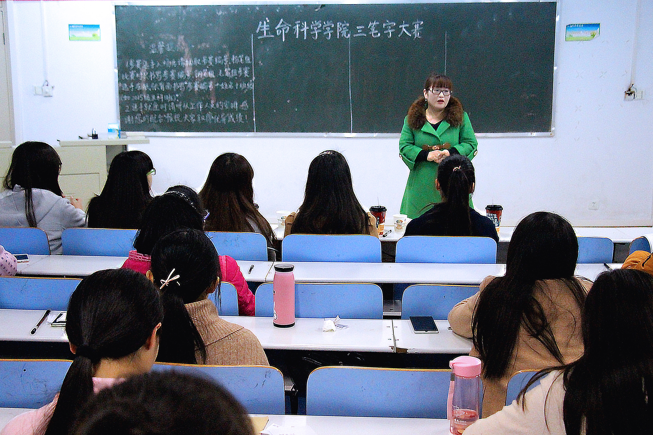 为丰富同学们的课余文化生活,培养大家的实践能力。11月13日晚,royal88手机登录团总支学生会在生物楼414教室举办三笔字大赛决赛。经过前期初赛的严格选拔,共有50名学生进入决赛。本次比赛邀请到我院教学秘书韩艳婷、大学生书法协会负责人及我院学生会干部担任评委。