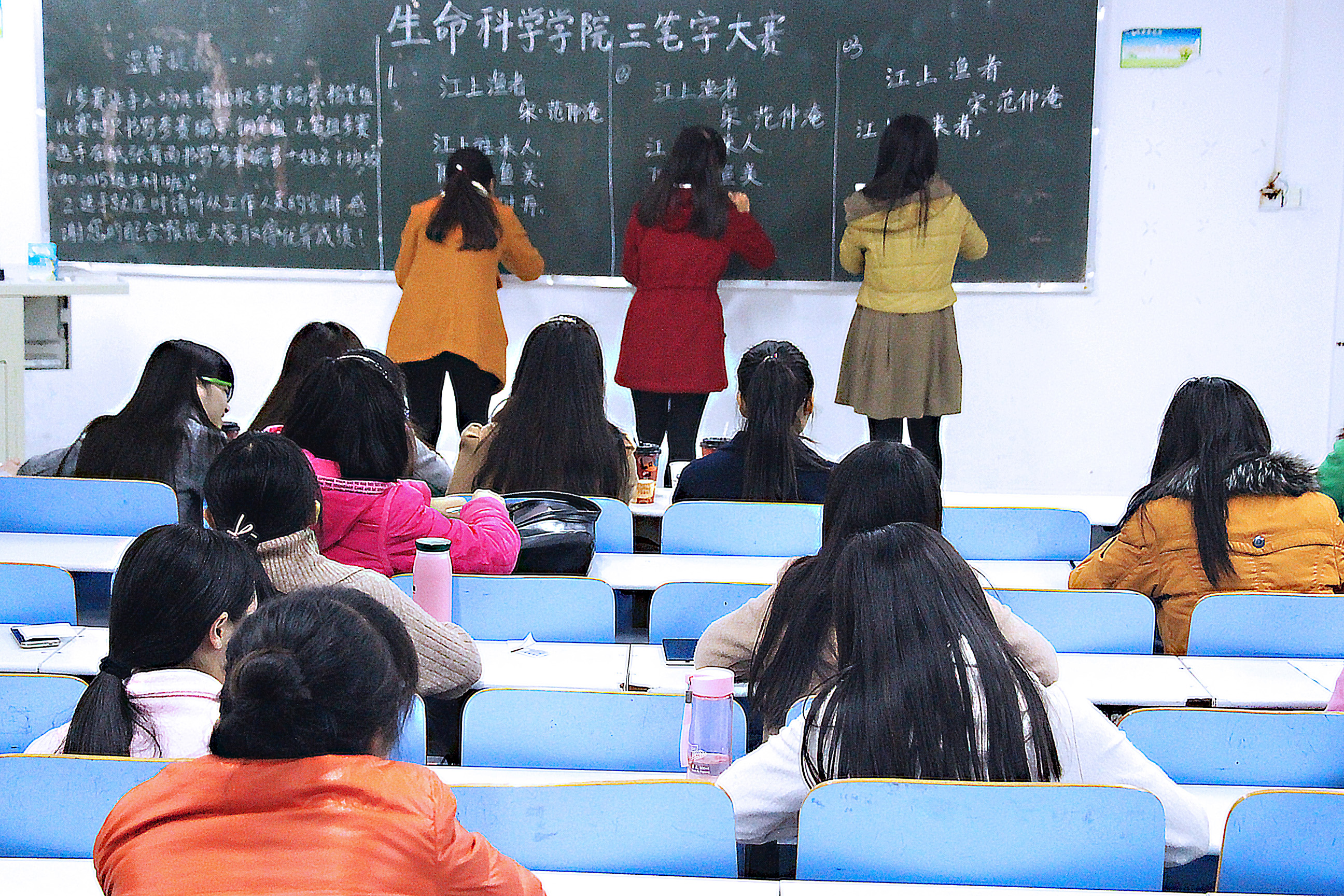 大赛伊始,韩艳婷老师致开场词。随后,比赛正式拉开帷幕。本次三笔字大赛分为钢笔组、粉笔组和毛笔组三个小组。粉笔组选手们三人一组,在规定的时间内在黑板上书写自己抽签选到的题目。只见选手们拿到题目之后,镇定自若,从容地走上讲台,工整地写下题目内容。随后是钢笔组和毛笔组的比赛,每位参赛选手在规定的时间内完成一篇作品,交给评委们统一查看打分。一番激烈的角逐之后,闫璐璐、陈雅馨、张育浩三位同学分别获得粉笔组、钢笔组以及毛笔组的冠军。