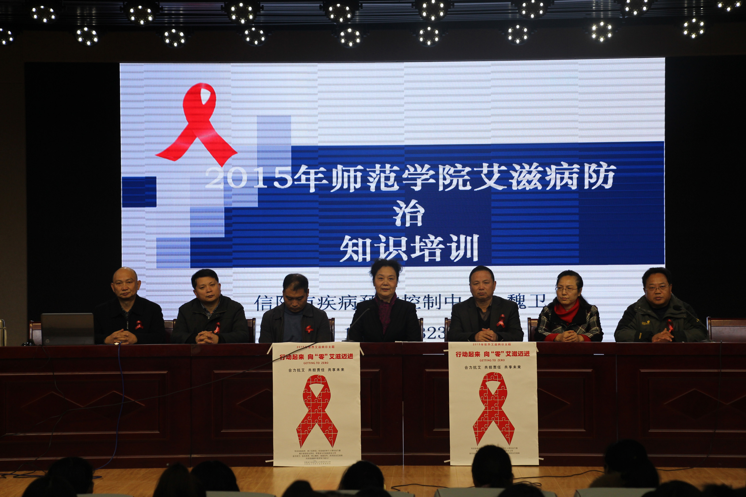 29日下午,活动举办方邀请信阳市疾病控制中心性病与艾滋病防治科科长魏卫教授在理科楼报告厅开展了艾滋病专题讲座。信阳市卫生与计划生育委员会副主任程伟、信阳市红十字会秘书长张孔华、信阳师范学院团委书记王建旭、信阳师范学院royal88手机登录党委副书记赵东、校医院院长王晓霞以及校医院优秀工作者应邀出席此次讲座,与百余名同学共同聆听了讲座。