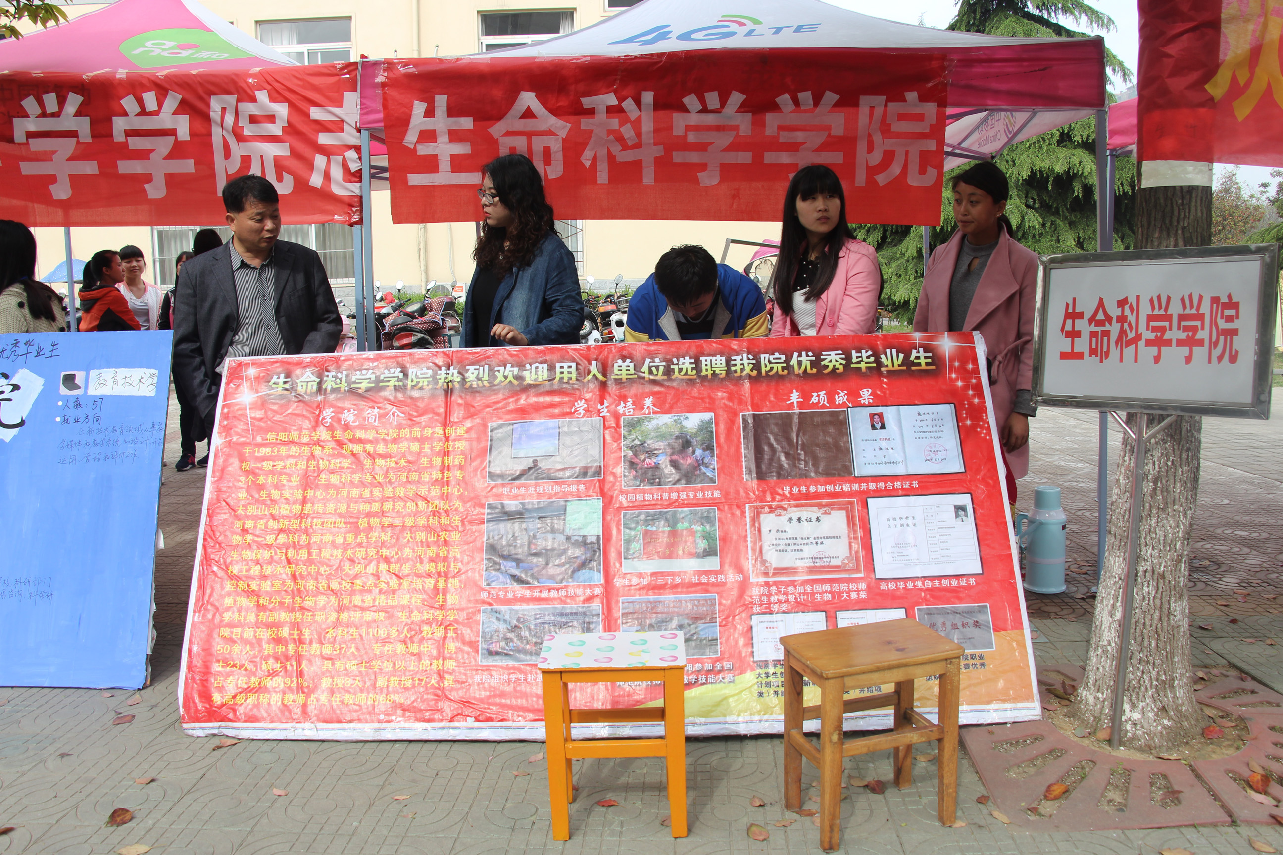 4月9日,信阳师范学院2016届毕业生春季就业双选会在逸夫楼一楼就业大厅正式启动。我院在人文楼前设立咨询站点,院党委副书记赵东,就业工作秘书熊蕾亲临会场并与用人单位及毕业生进行深入交流。