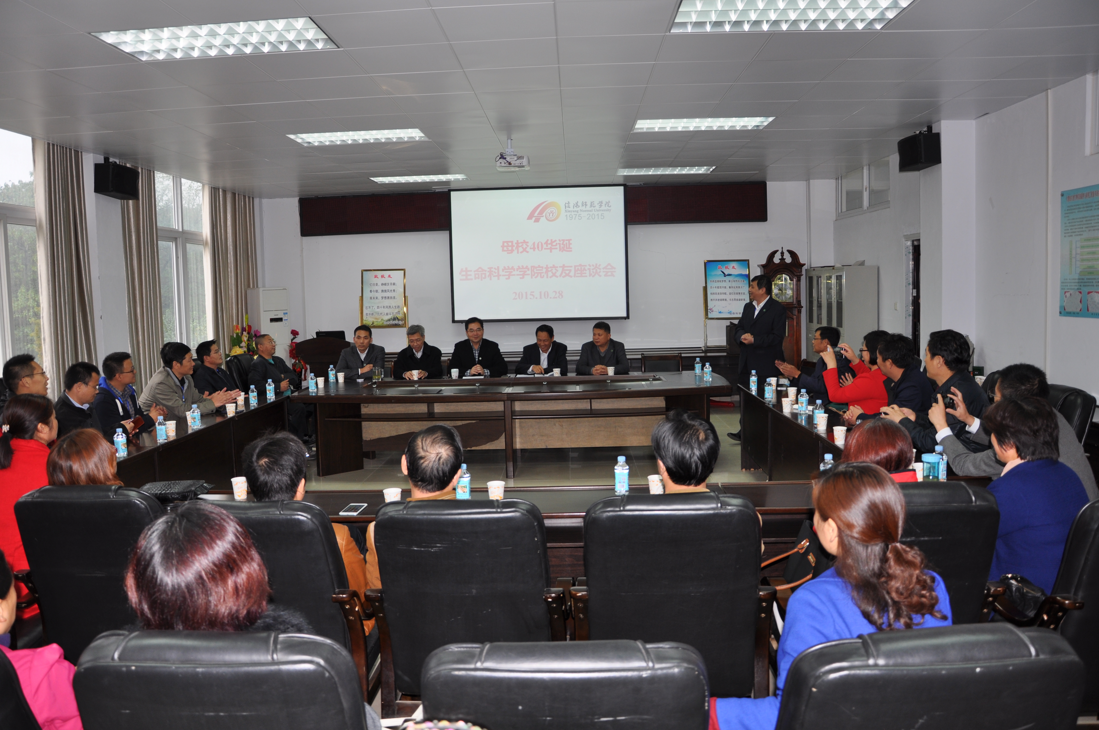 院长袁红雨首先对母系的开创者和全体师生的不懈努力表示崇高敬意,对校友们与母校母系之间的深情厚谊表示仰慕钦佩,从生物科的二次辗转开办,到生物系的艰难起步,再到生科院现阶段农学学科与药学学科的交叉渗透,融与校友们一起创业乐趣,与同事们完成工作任务的志趣,师生互动互助情趣,侃侃说去,娓娓道来,赢得阵阵掌声,声声喝彩。校友们逐人汇报在学时某师某生某物某事,笑语不断,毕业以后起早贪黑饮食不定的创业历程,会场静穆。本科生代表的发言发出了向校友学习,向母校致敬的最强音。