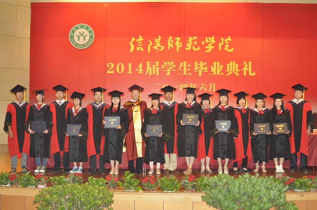 下午3时30分,典礼仪式在庄严的国歌声中拉开帷幕。首先,副院长宋新强博士宣读了信阳师范学院关于授予2014届本科毕业生学士学位的决议。经校学位评定委员会审议,决定授予2014届royal88手机登录266名普通本科毕业生学士学位。紧接着,院长袁红雨教授发表了情真意切的致辞,他代表royal88手机登录全体同志对同学们圆满完成大学学业,顺利毕业表示衷心的祝贺,对付出辛劳的老师表示感谢,对同学们的美好未来寄予了最真诚的祝福。随后,该院毕业生代表2010级学生张虎臣、在校学生代表2011级学生李豪先后作了精彩发言,其中,张虎臣言语中透露出对母校、老师的感恩和不舍,李豪则表达了对毕业生的美好祝愿。在热烈的掌声中,身着学士服、头戴学士帽的毕业生们按顺序上台向导师鞠躬,刘彦明、袁红雨教授等导师代表为2014届毕业生拨流苏,颁发学士学位证书,并合影留念。毕业典礼仪式在雄壮激昂的校歌声中圆满结束。