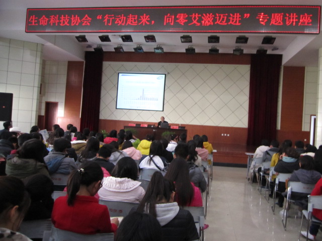 为加强大学生对艾滋病知识的了解,提高大学生对艾滋病防治知识的认识,11月29日下午,值第26个世界艾滋病日来临之际,royal88手机登录生命科技协会联合该院青年志愿者协会在逸夫楼报告厅举办“行动起来,向零艾滋迈进”专题讲座。市疾病预防控制中心性病艾滋病防治科主任、副主任医师魏卫应邀担任主讲。信阳市红十字会秘书长张孔华、校医院周经兵书记等受邀参加了此次讲座,并与300余名学子共同聆听了此次讲座。本次讲座由royal88手机登录党总支副书记赵东主持。