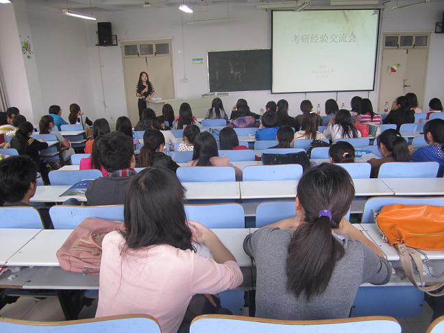 此次考研经验交流会共分为三场,考取暨南大学 、华中科技大学 、西安交通大学等重点院校的15名2009级优秀考研学子应邀为大家介绍自己的考研经历和学习经验。会上他们分别从不同角度讲述了自己考研的复习经历以及考研注意事项,在“考研学校和专业的选取,跨专业考研,考研面试技巧,复试和调剂注意事项”等方面做了详细的讲解,为同学们提出了很多宝贵的经验和建议。在谈及备考经历时,他们指出备考时的心态调整十分重要,一旦决定考研,在备考过程中一定要学会坚持,做到每天都有收获,决不能松懈。同时,他们强调耐性是备考阶段最重要的,要有耐心不能急于求成,面对各种习题要积极解答,知难而进。他们也提到备考过程中资源共享、共同学习更有利于进步。针对跨考问题,考上西安交通大学会计学的马瑞讲述了自己的经验,他告诉同学们跨专业考研并不可怕,只要努力不放弃,就会成功。她的经历不仅鼓励了跨专业考研的学生更鼓励了本专业考研的学生。现场同学认真听讲,积极参与,踊跃提问。几位优秀考研学子对同学们提出的问题给予了耐心、详细的解答,现场气氛十分活跃,掌声不断。