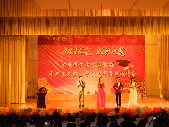 晚会期间,袁红雨、张苏锋、马云、黄斌等领导老师分别为2009级毕业生进行了学位授予,并对他们表示衷心地祝贺。晚会最后,2009级四个班级分别用毕业合唱诠释了毕业生们对母校、老师、同学的深深眷恋和感恩,引起了全场学生的共鸣,晚会也在不舍和留恋中圆满落下帷幕。