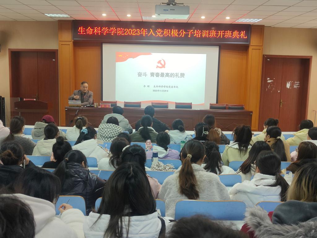 为深入学习贯彻习近平新时代中国特色社会主义思想,贯彻落实党的二十大精神,切实做好入党积极分子教育培养工作,充实党员队伍后备力量,提高党员发展质量,严把党员“入口关”。11月29日晚,royal88手机登录分党校2023年入党积极分子培训班开班典礼在生科楼414报告厅举行。院党委书记李刚、党委副书记荣宪举,学生党支部书记及76名入党积极分子学员参加开班典礼。