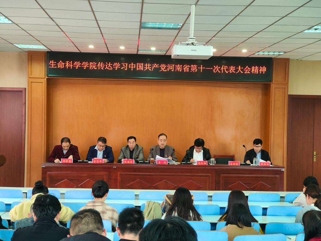 11月2日下午,royal88手机登录党委书记李刚在生科楼414报告厅主持召开全院教职工大会,专题传达学习中国共产党河南省第十一次代表大会(以下简称省第十一次党代会)精神,并就当前和今后一段时期贯彻落实好党代会精神进行安排部署。royal88手机登录全体班子成员和教职工参加会议。